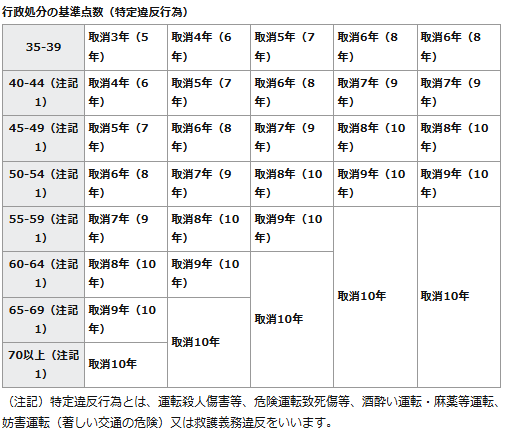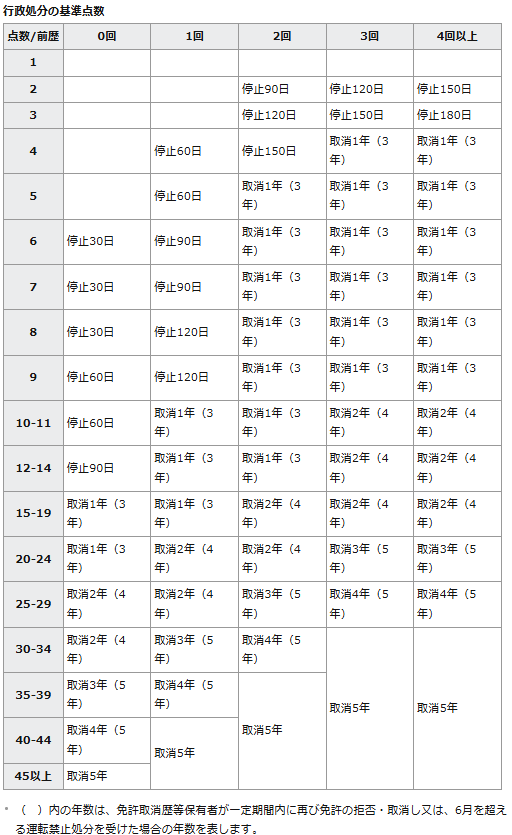 違反点数一覧表について