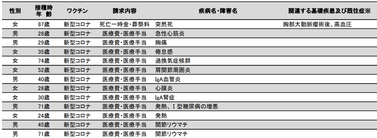 コロナワクチン副反応については、いろいろな症例が報告されています。